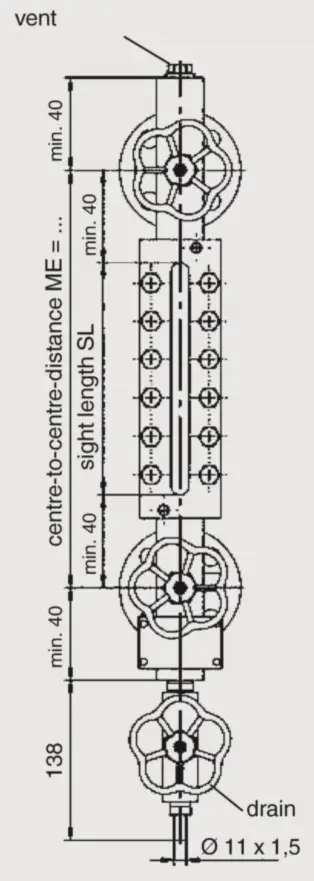transparentní přímý stavoznak připojení boční nebo zadní ventilové hlavice s ručním kolem