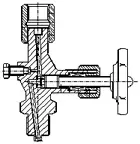 Tlakoměrový ventil podle DIN 16270 s odvzdušněním, ale bez zkušebního připojení.